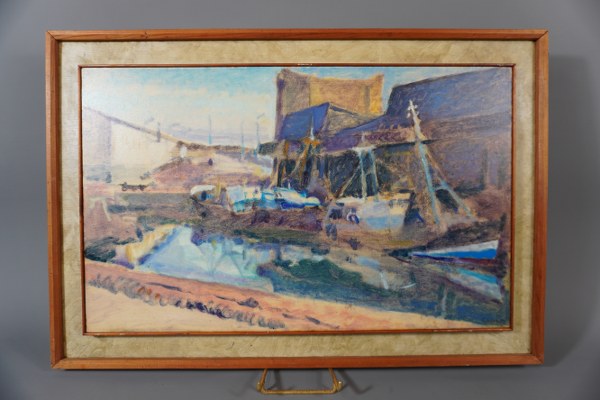 Ecole du XXe siècle. Vue de Sallenelles. Huile sur toile..