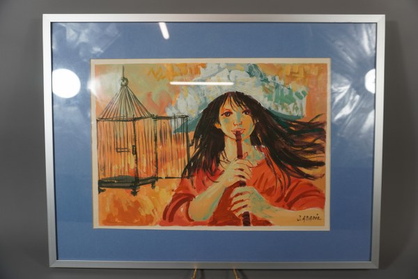 Jean Abadie 1921-2010. Gouache "jeune fille à la cage" signé..