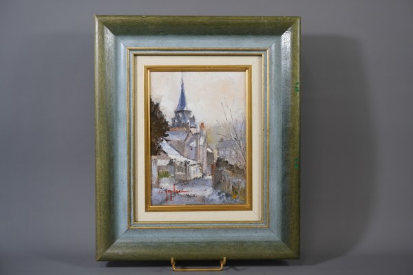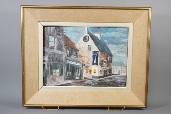 Jean-Claude Rondeau, né en 1955. Huile sur toile "Clécy, rue..