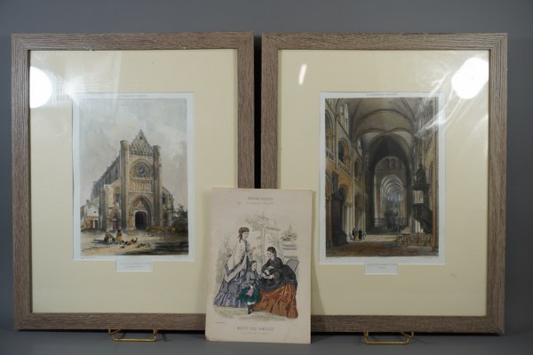 2 Gravures "la Normandie illustrée" sous verre 55x45cm. On y..