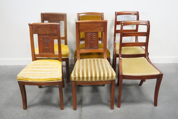 Lot de 6 chaises dont 1 paire et 1 trio...