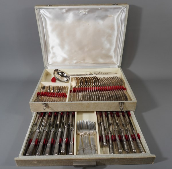 Ménagère en métal argenté dans coffret comprenant 12 couverts, 12..