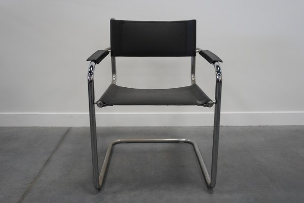 Chaise à piétement en métal chromé tubulaire avec garniture en..