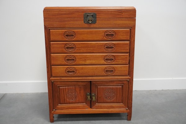 Petit meuble argentier en bois naturel de camphre.