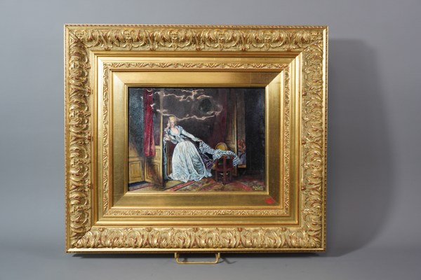 Émaux sur cuivre Limoges "le doux baiser" signé en bas..