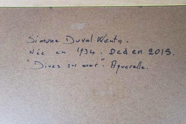 Simone Duval-Wenta 1934-2015. Aquarelle "Dives sur mer" signé et daté..