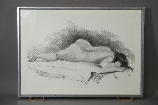 Jacqueline Tollet-Loeb 1931-2021. Fusain "nue allongée" signé en bas à..