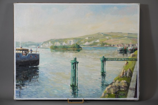 GIANOLA Aurelio (1915-2008). Andelys. Huile sur toile signée et titrée..