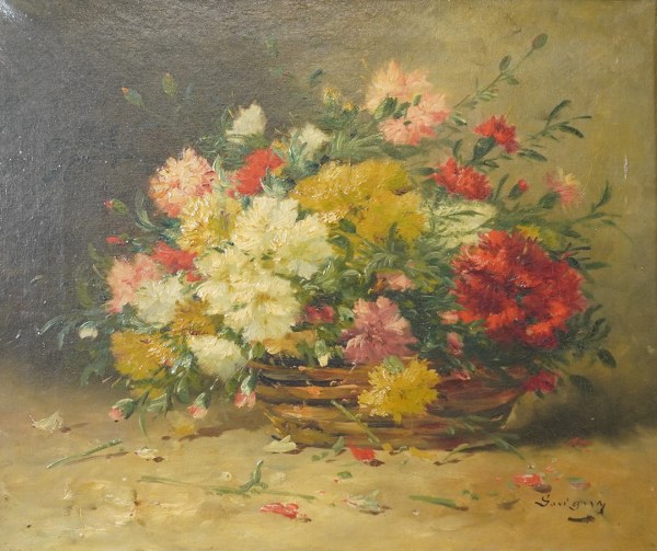 Paul SAVIGNY. Bouquet de fleurs. Huile sur toile signés en..