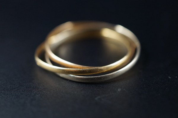 Alliance triple anneaux de trois tons en or (750°°°). TDD..