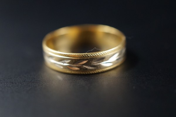 Alliance en or (750°°°) de deux tons, à décor d'une..