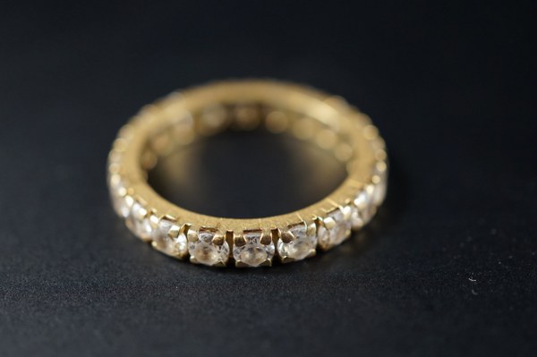 Alliance américaine en or (750°°°) sertie de pierres blanches. Poids..