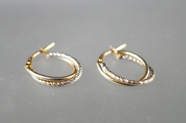 Boucles d'oreille en or de deux tons (375°°°). Poids net..