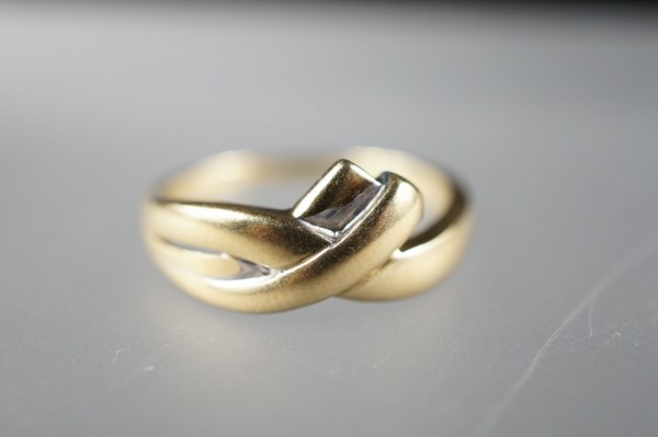 Bague en or de deux tons (375°°°). TDD : 57,5...