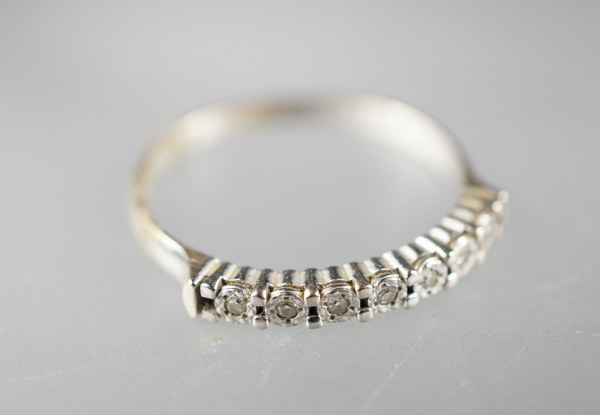 Alliance semi américaine en or gris (750°°°) sertie de brillants...