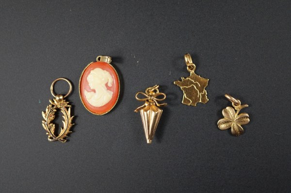 Pendentif palmes en or 750°°° à décor émaillé. Poids brut..