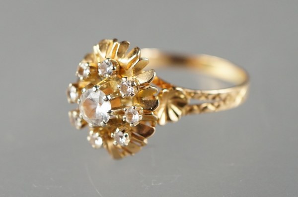 Bague en or jaune (750°°°) sertie de pierres blanches. Poids..
