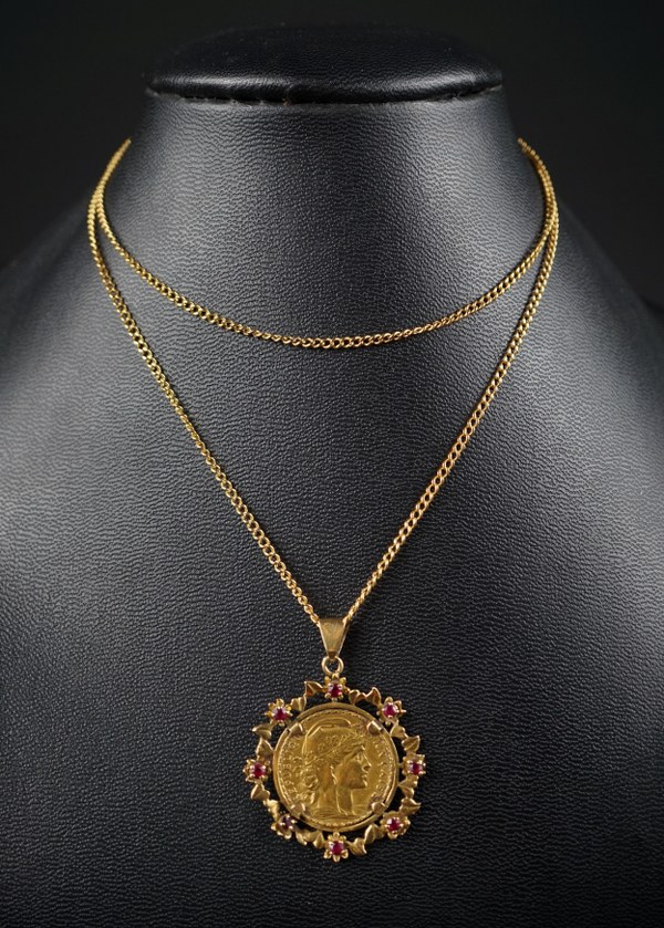 Pendentif et chaine en or jaune (750°°°), le pendentif à..