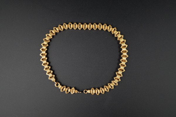 Chaîne en or jaune (750°°°) à maillons striés. Accidentée. Poids..