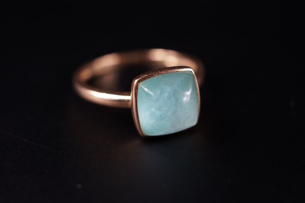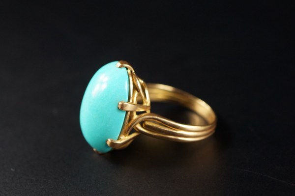 Bague en or jaune (750°°°) sertie d'une pierre dure turquoise..