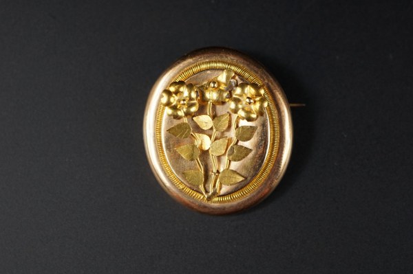 Broche-pendentif circulaire en or jaune (750°°°) à décor de fleurs...