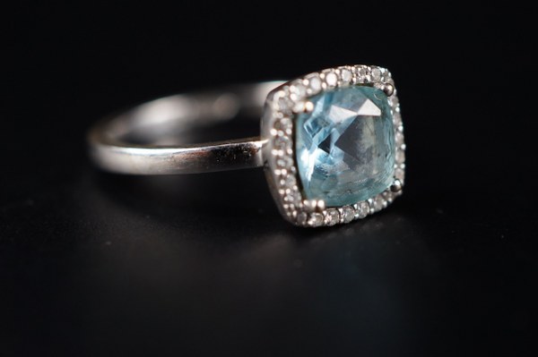 Bague en or blanc (750°°°) sertie d'une aigue-marine et petits..