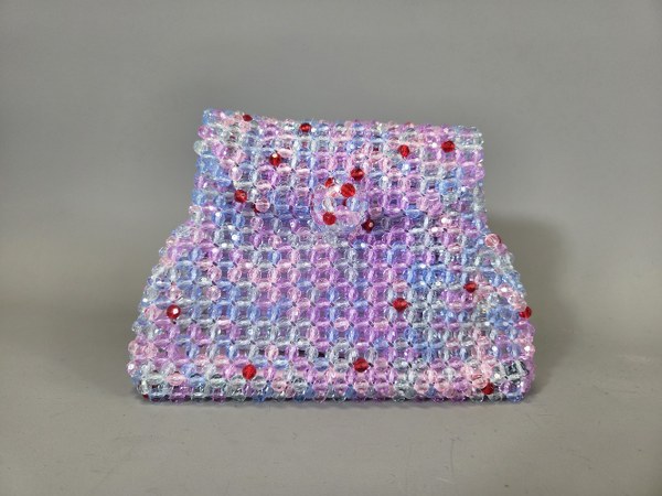SONIA RYKIEL. Petit sac du soir perlé rose, parme, turquoise..