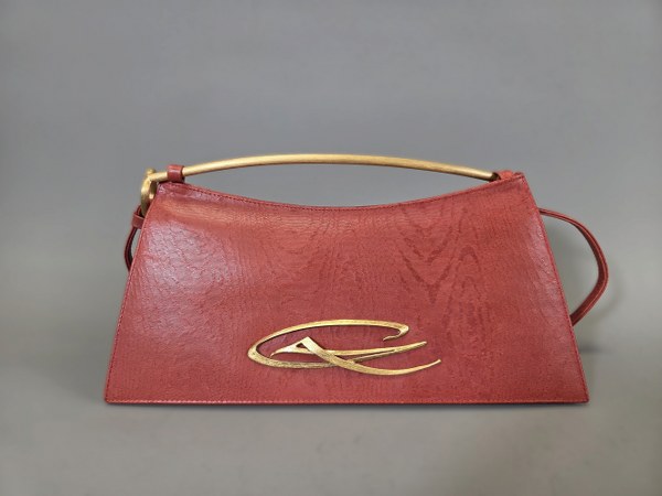 CHRISTIAN LACROIX. Petit sac du soir rigide rouge siglé doré,..