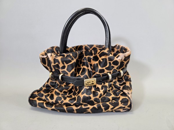 SONIA RYKIEL. Sac porté main imprimé panthère effet froncé sous..