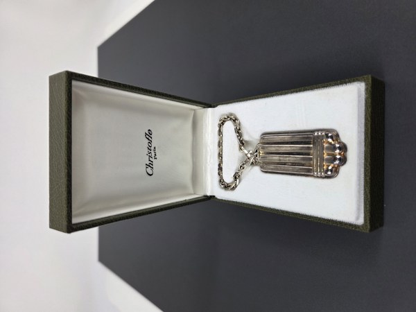 CHRISTOFLE, collection ARIA. Porte-clés en métal argenté à motif de..