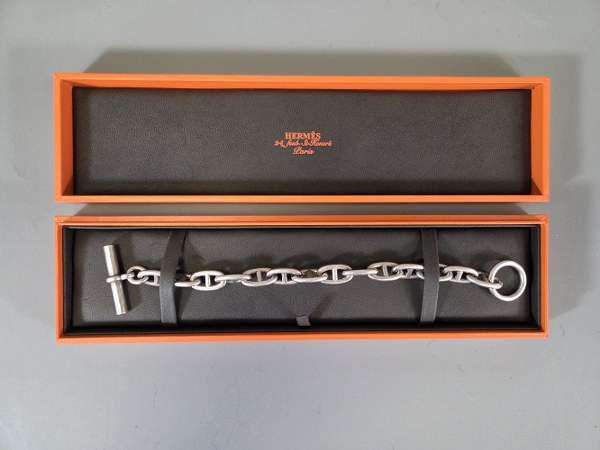 HERMES. Bracelet chaîne d'ancre en argent (925°°°). Poids : 72,7..