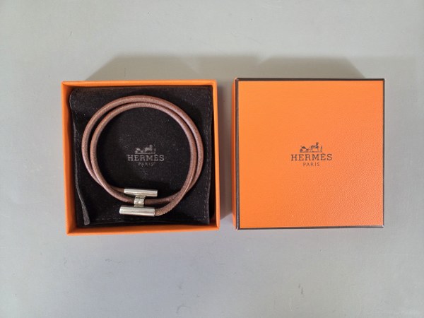 HERMES. Bracelet Tournis en cuir marron et fermoir "H" en..