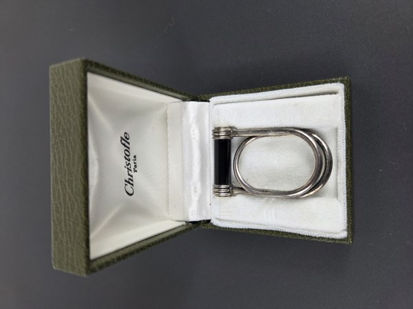 CHRISTOFLE. Pince à billets en métal argenté et laque de..