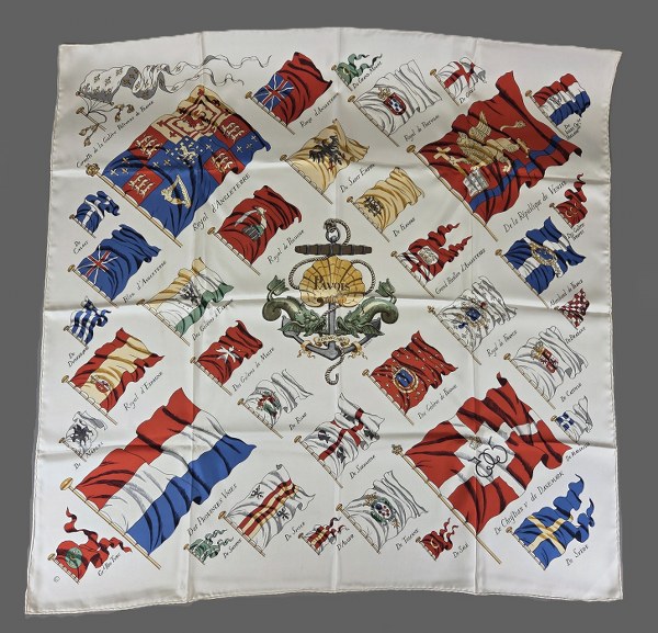 HERMES. Carré en soie "Pavois" d'après un modèle de Ledoux...