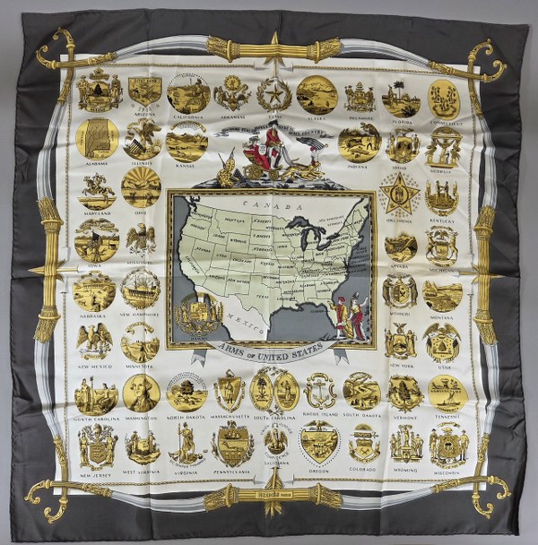 HERMES. Carré en soie "Arms of United Sates". Tâches.
