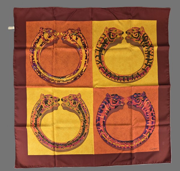 MUST DE CARTIER. Carré en soie à motifs de bracelet..