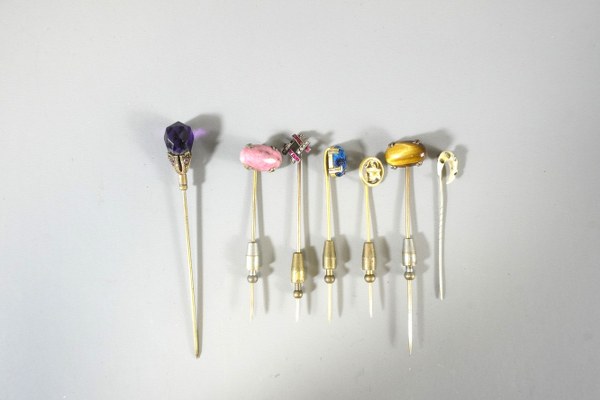 Un lot de 7 épingles à cravate en métal ornées..