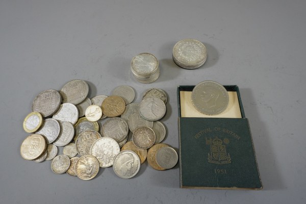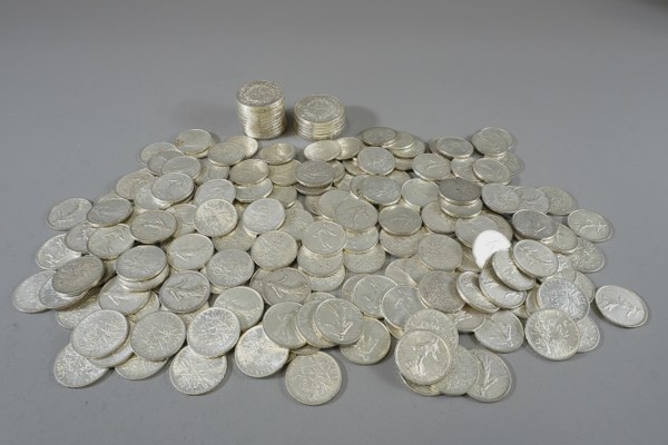 Lot de pièces de cinq, dix et cinquante francs en..