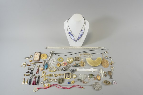Ensemble de bijoux comprenant notamment des pendentifs, bracelets, broches, colliers...