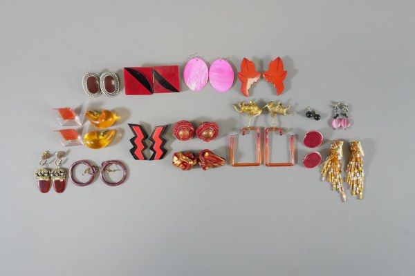 Lot de bijoux fantaisie à dominante rouge comprenant boucles d'oreilles.