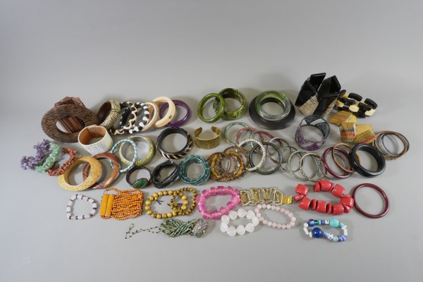 Lot de soixante et un bracelets fantaisie.