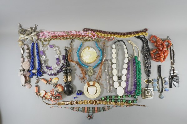 Lot de bijoux fantaisie comprenant dix sept colliers et une..