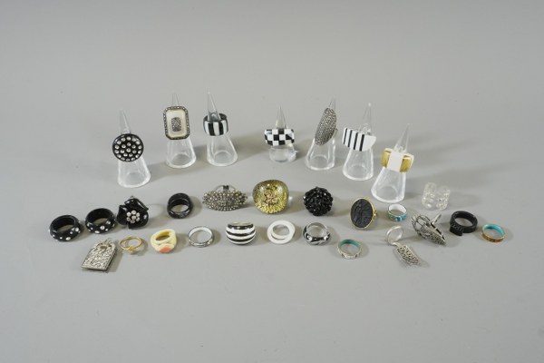 Lot de trente bagues de fantaisie à dominante noir et..