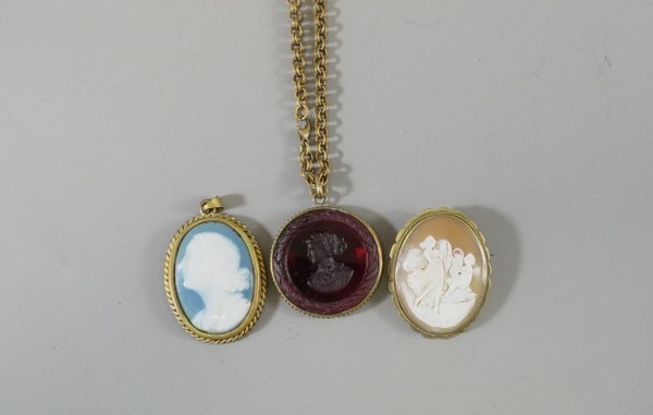 Lot comprenant deux camées dont un à profil de femme..