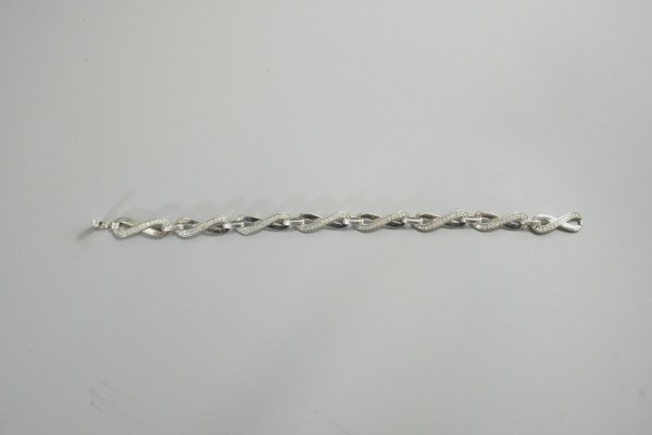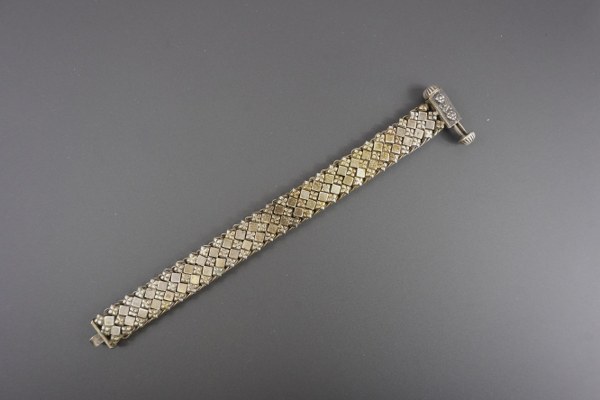 Un bracelet en argent (800°°°) à mailles articulées alternant des..