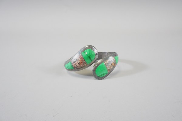 Un bracelet en argent incrusté de pierres dures. Poids brut..