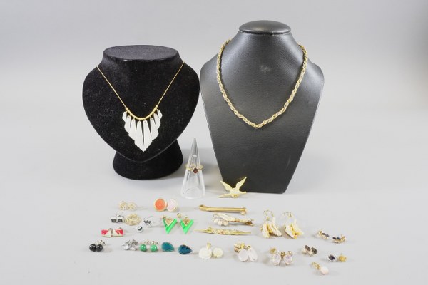 Lot de bijoux fantaisie comprenant colliers, paires de boucles d'oreilles,..