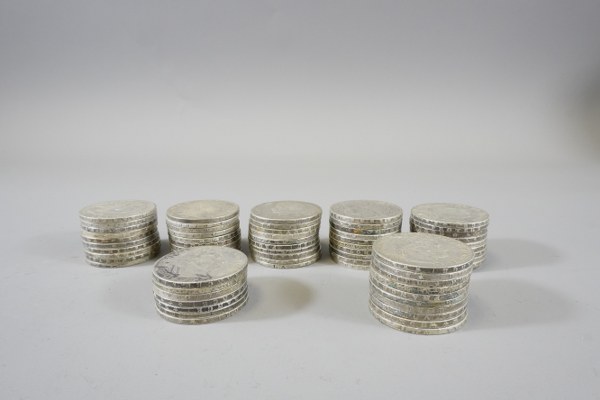 Lot de soixante six pièces de monnaie de cinq francs..
