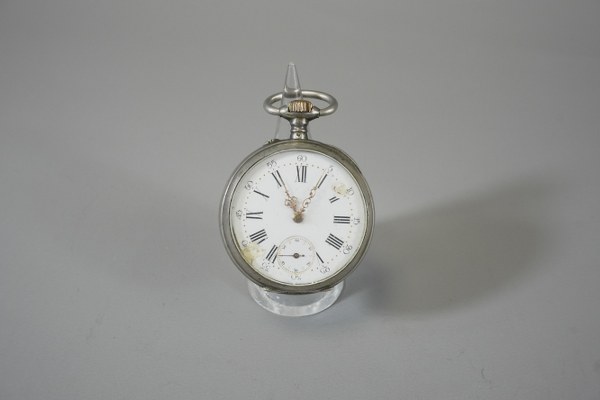 Montre gousset en argent. Poids brut : 57 grs. Accident