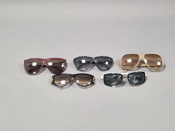 Ensemble de cinq paires de lunettes de soleil en plastique..